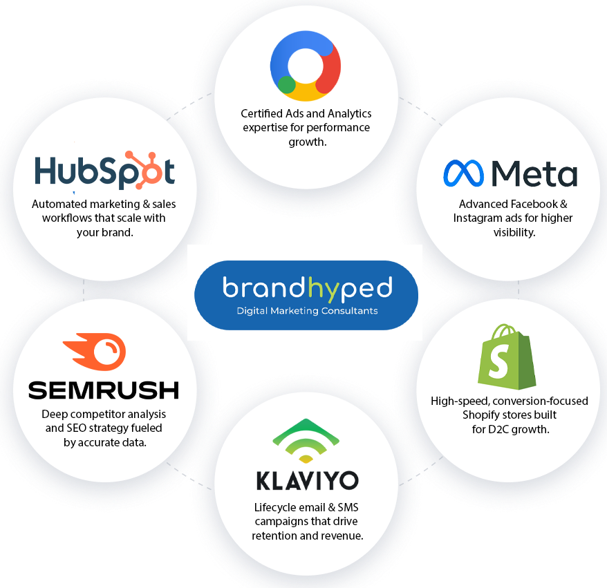 At Brandhyped Digital, we combine data, creativity, and Global insights to help brands grow faster. Whether you’re a startup or a $5M+ company, our team delivers strategies that align with your goals — not just impressions or clicks.